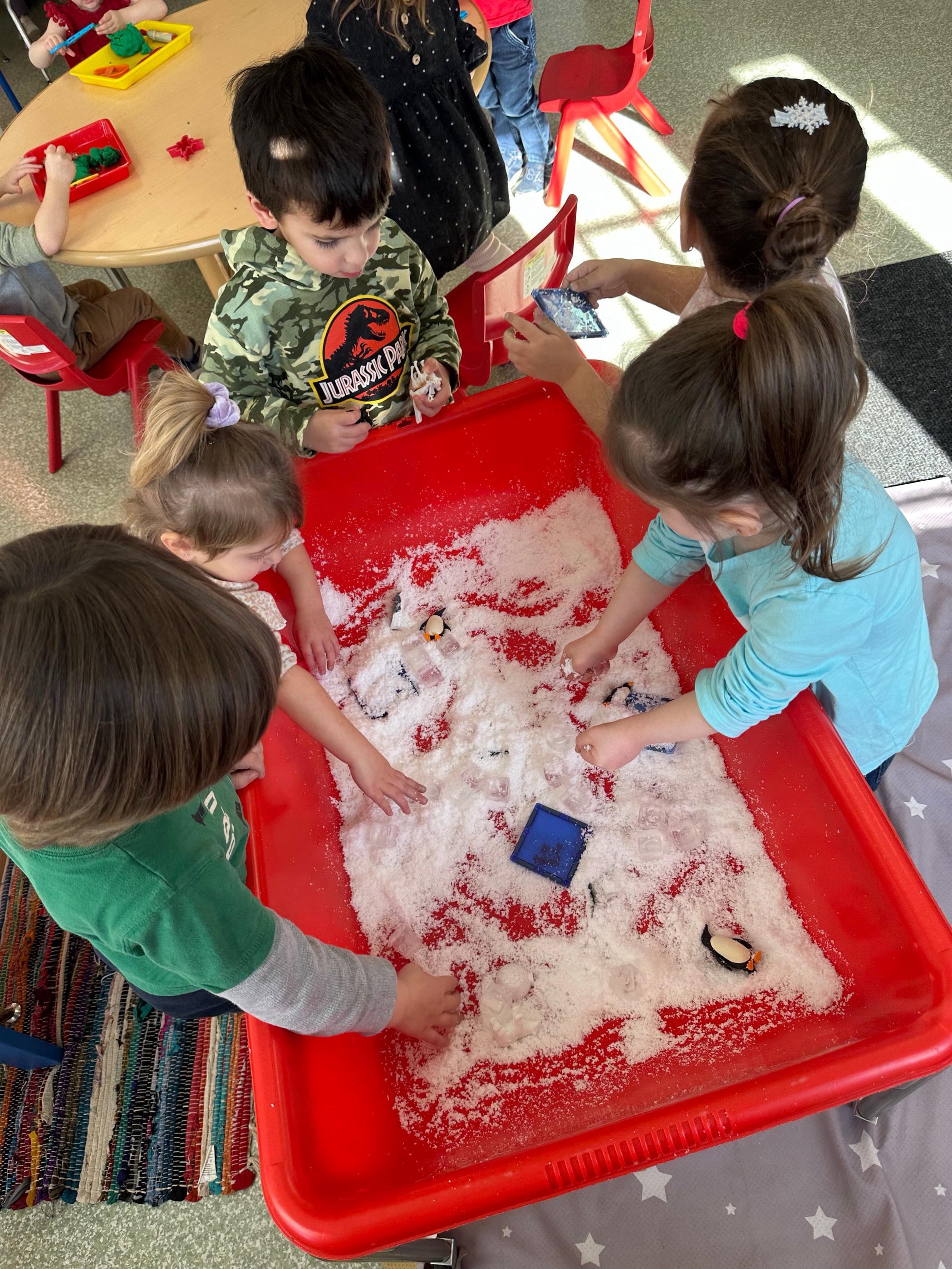 In our 5 day class, we strengthen social and emotional skills as we foster a sense of independence. Our main focus is to build the foundation needed for a positive school experience as they get ready for kindergarten. We work on following two and three step directions. and do independent projects built on teacher modeling. We work on writing both their first and last names while strengthening their proper pencil grips. Other skills introduced and reviewed in our 5 day include recognition of upper and lowercase letters, recognizing numbers 1-20, counting 1-100, complex patterns (AB, AAB, ABAB), science exploration, and studying the world around us. We begin to do prewriting skills that involve us “writing” our own stories and sharing them in our author’s chair. As the year goes on, we introduce and build sight words. Learning in the 5 day class is through a hands on and tactile approach. We follow a daily schedule and we do a lot of work in small groups and partner learning.